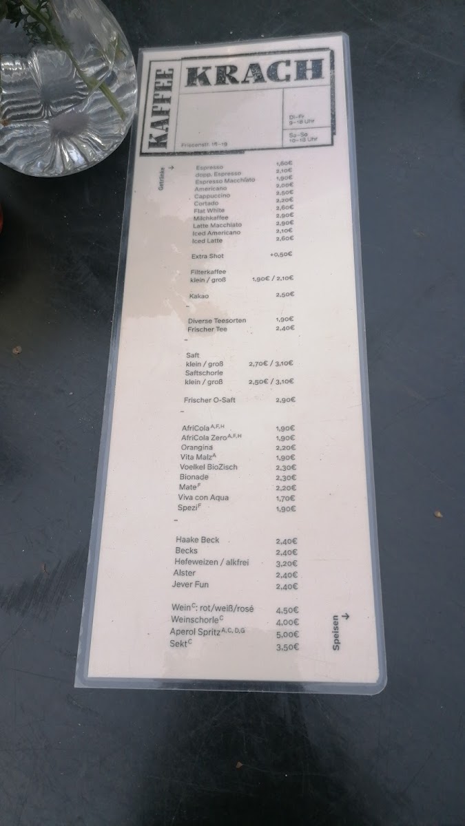 At Kaffee Krach, the dedication to quality service shines through. The friendly staff are not only attentive but genuinely passionate about creating memorable experiences for each customer. Whether you’re savoring a flavorful slice of Schoko-Mandel Kuchen or pairing your coffee with a refreshing BlaubeerQuark Kuchen, each bite is a celebration of flavor and care.